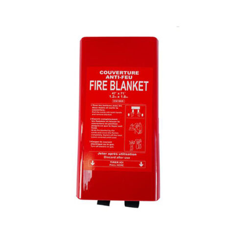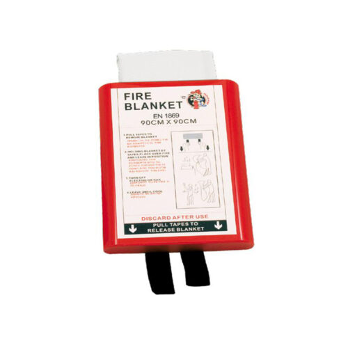 Πυρίμαχη Κουβέρτα, Άσπρη, 1,50 x 1,50m σε Μαλακή Θήκη, με αναγραφή ”ΠΥΡΙΜΑΧΗ ΚΟΥΒΕΡΤΑ” & ”FIRE BLANKET” και με οδηγίες χρήσεως στα Ελληνικά και Αγγλικά.